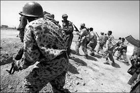 Imperial soldiers advancing towards a Brolecian line near the Batista river.