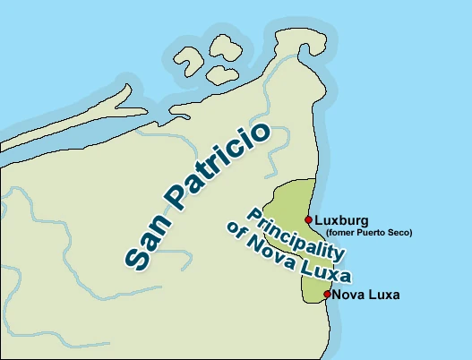 The Principality of Nova Luxa is a Homeland of the Union of San Patricio, formerly an enclave of the Kingdom of Ordland, and one of the remnants of the Empire of Maurestania under former Ordlandic Protection. It is located on the eastern coast of San Patricio on the Melanian continent.