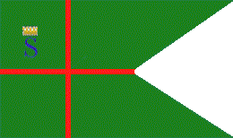 The Nova Luxa Homeland, following the San Patrician tradition of regional vexillology, has a flag with the San Patrician national colors on the left, the crowned S of the House of Sergio and the traditional red cross on a green field, and 6 golden stars for the Seis Pueblos of the Union. The flag was officially adpoted by agreement of the Consejo de los Veinticuatro, following a proposal from the Prince, on June 19, 320.